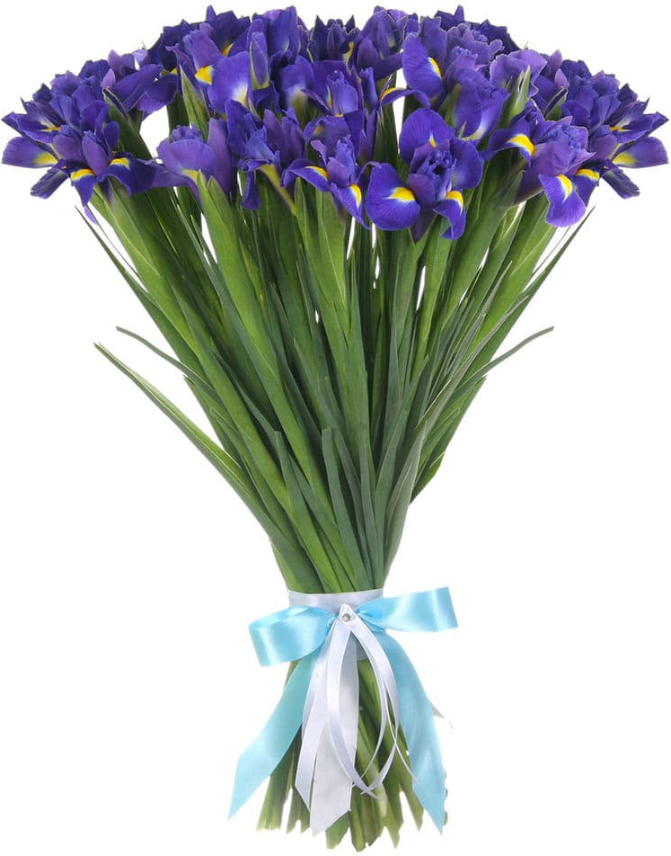Дивный букет из загадочных и трогательных ирисов, лепестки, которых очаровывают своей бархатистостью и причудливым радужным окрасом, окутает вас своим удивительным сладким запахом, похожим на смесь ванили и топленного молока, порадует красотой, подарит радость и гармонию.
